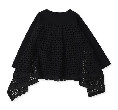 後身頃に使用した、コットン地にアイレット刺繍を施したスカラップレースが目を惹きます。