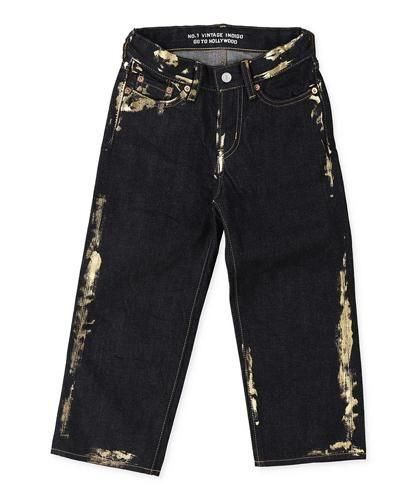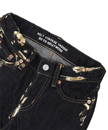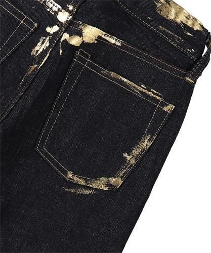 スケーターのボーイフレンドから借りたようなシルエットとキラキラの加工が特徴の5ポケットのパンツ。