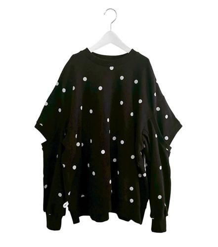 【frankygrow】 DOT DEFORMED SLEEVES SWEATSHIRT (F2) BK×WH 2025AW