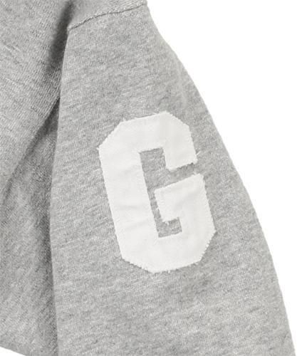 BACKはロゴプリント、左袖にはGのアップリケ。
