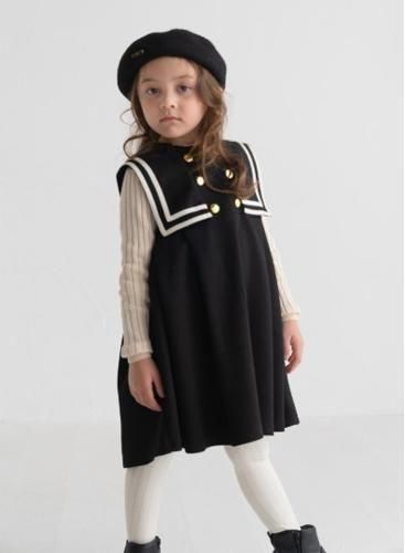 上品でマリンテイストのジャンパースカートはキッチリな場所にもピッタリです。