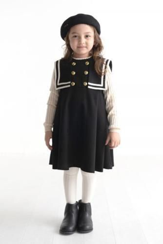 上品でマリンテイストのジャンパースカートはキッチリな場所にもピッタリです。