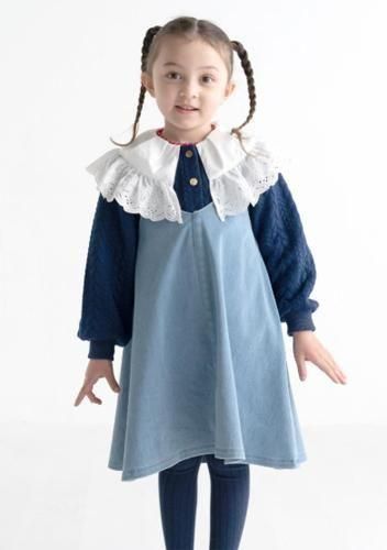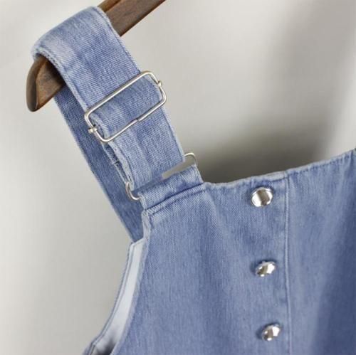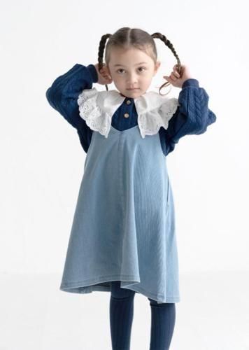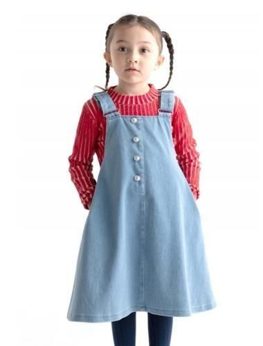 爽やかなブルーのデニムニット素材のジャンパースカートです。