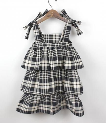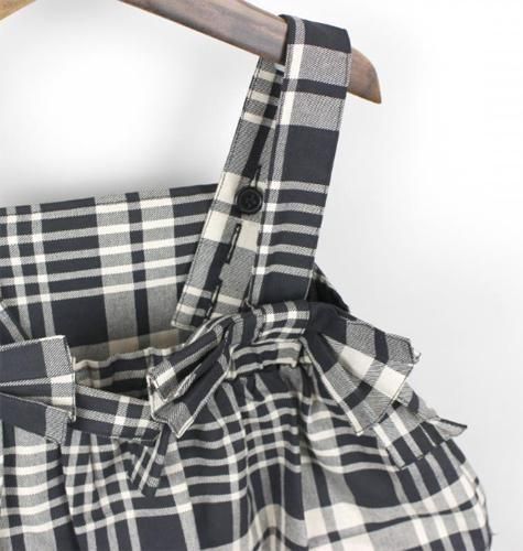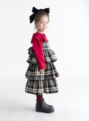 モノトーンチェックがクールなティアードジャンパースカートです。