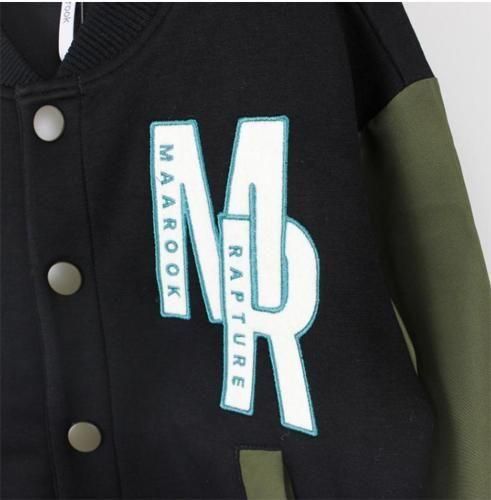 身頃はダンボールニット、お袖はポリエステルツイルのスタジアムジャンパーデザインのジャケットです。