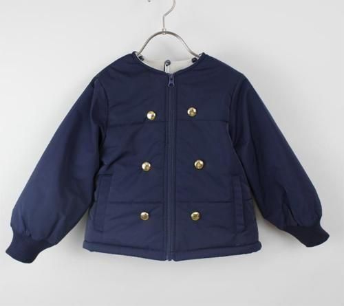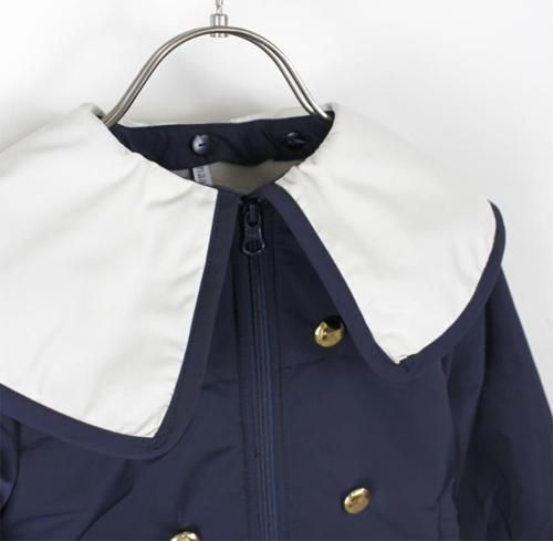 上品な光沢感とハリのある素材のセーラー衿の中綿ジャケットです。