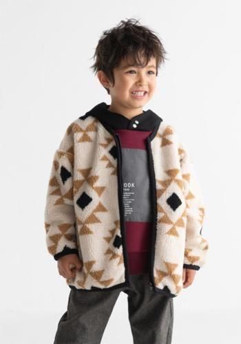 幾何学柄がお洒落なボアジャケットです。
