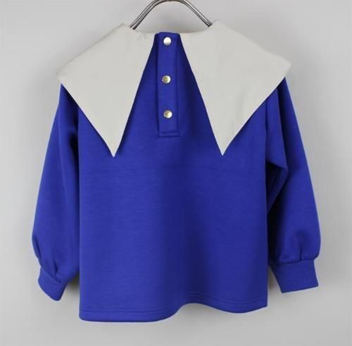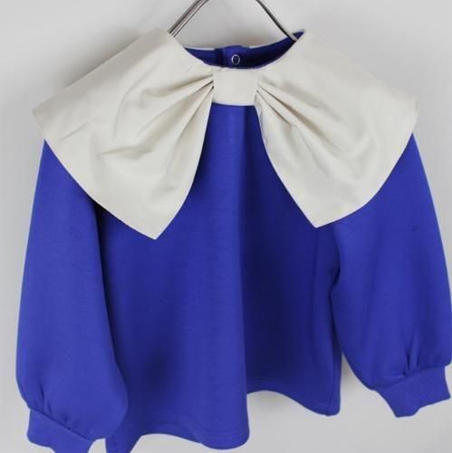 オフカラーの大きなリボン衿がオシャレなトレーナーです。