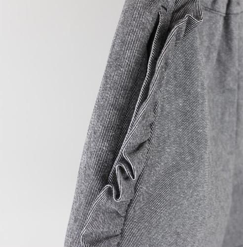 モノトーンカラーのデニムでできたフリル付きのキュロットです。