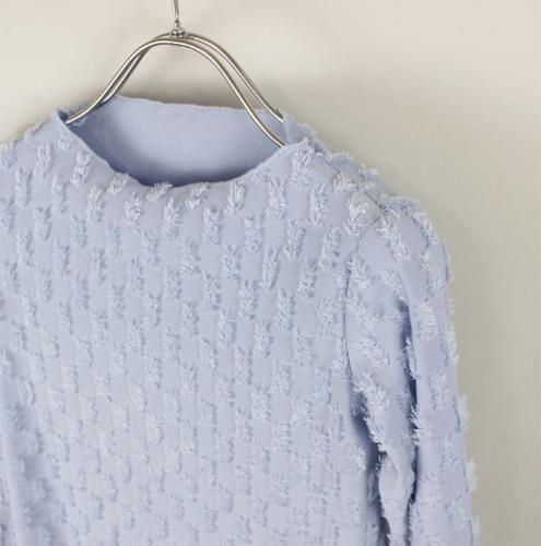 てんてん模様がかわいいジャガード素材でインナーとしても合わせやすいボトルネックTシャツです。