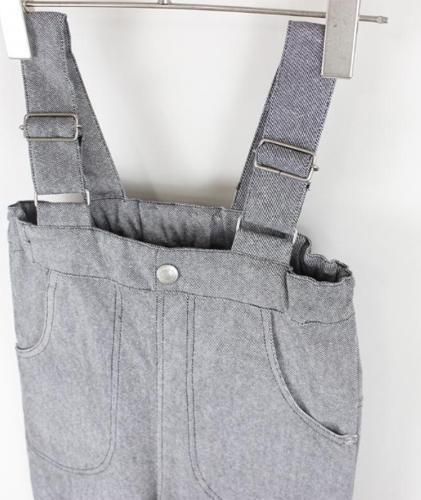 太めのサスペンダーがポイントでハイウエストデザインなので脚長に見える効果もあるデニムサスペンダーパンツ。