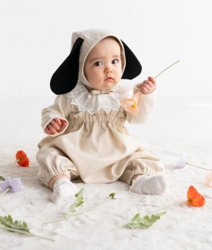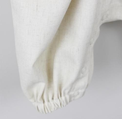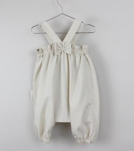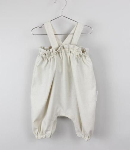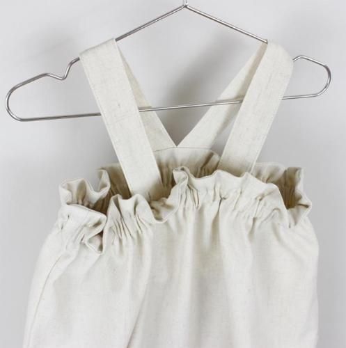 上品な光沢感の杢ツイルでおつくりした背中リボンつきのサロペット。