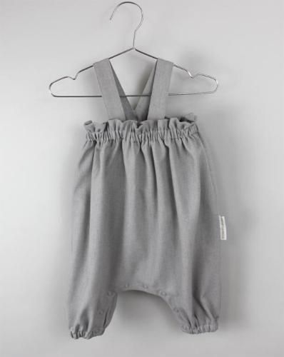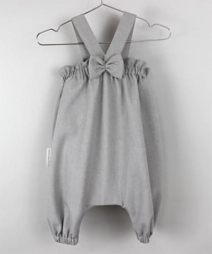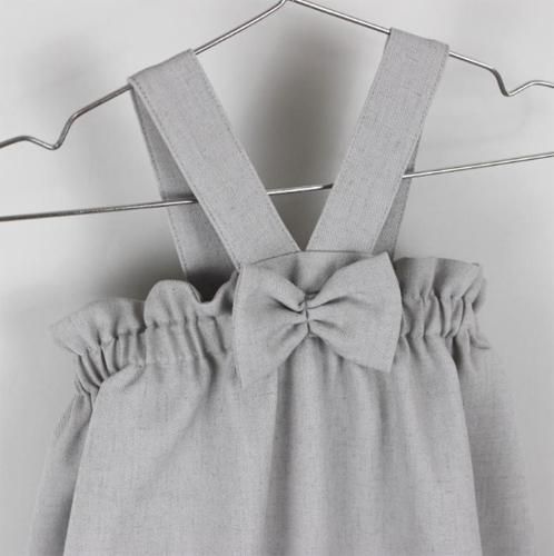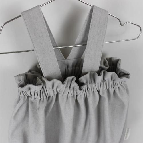 上品な光沢感の杢ツイルでおつくりした背中リボンつきのサロペット。