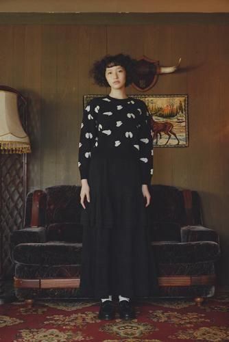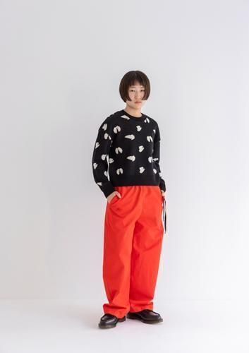 スポンディッシュで膨らみのある糸でテーマにもつながる天使の羽のジャガードセーターを作りました。