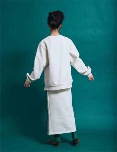 綿100%の裏毛素材をベースに異素材のフェルトのような質感のウール混の生地を張り付けたようなデザインの大人用ロングスカート。