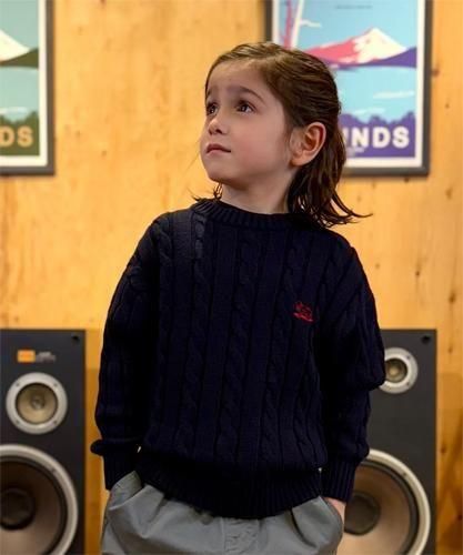 【Groovycolors】 ケーブル編みクルーネックニット (155~165)NV 2025AW